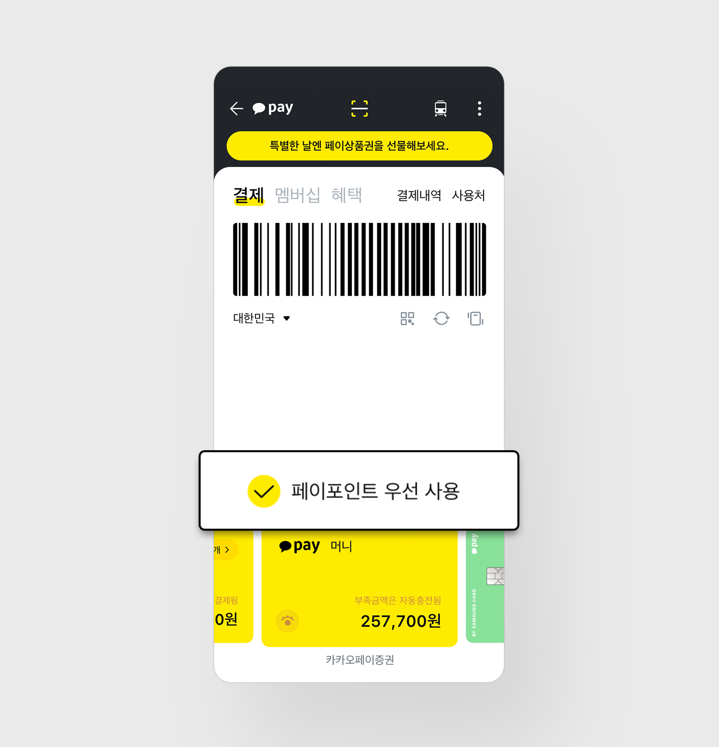 Q. ‘페이포인트 우선 사용’ 버튼이 안보여요.