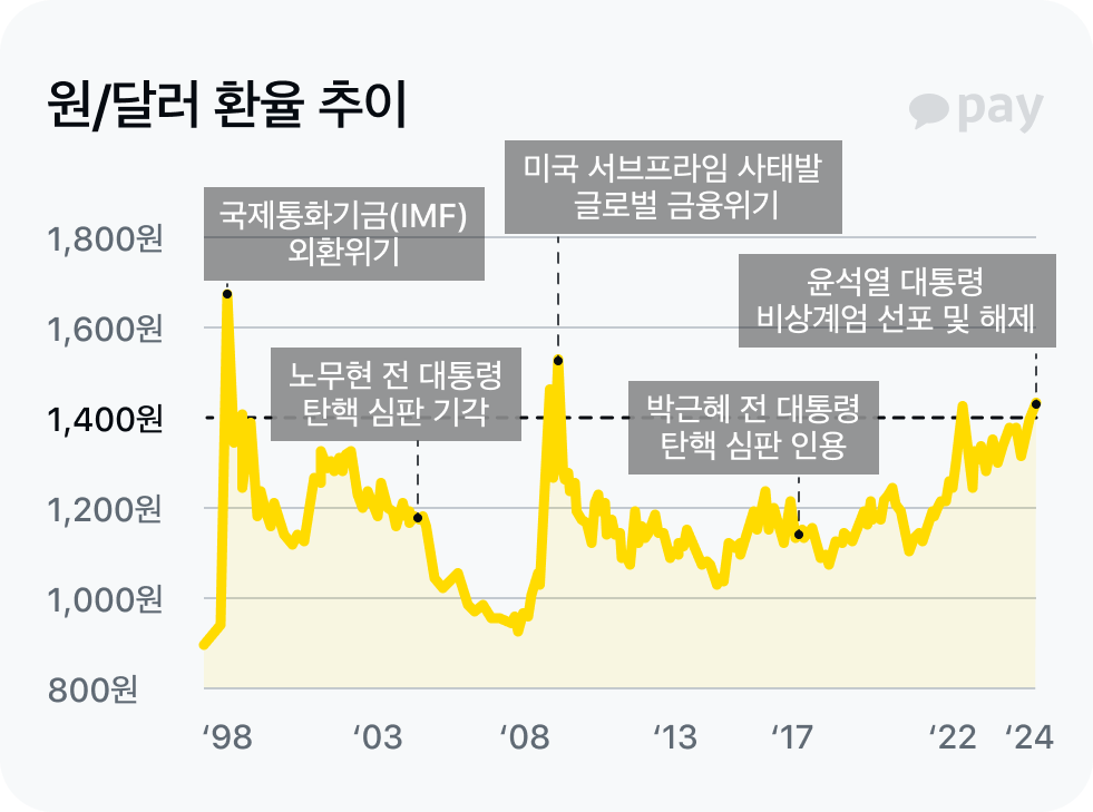 📊 원달러 환율이 1,450원을 넘었던 건 IMF 외환위기와 글로벌 금융위기가 유일해요.