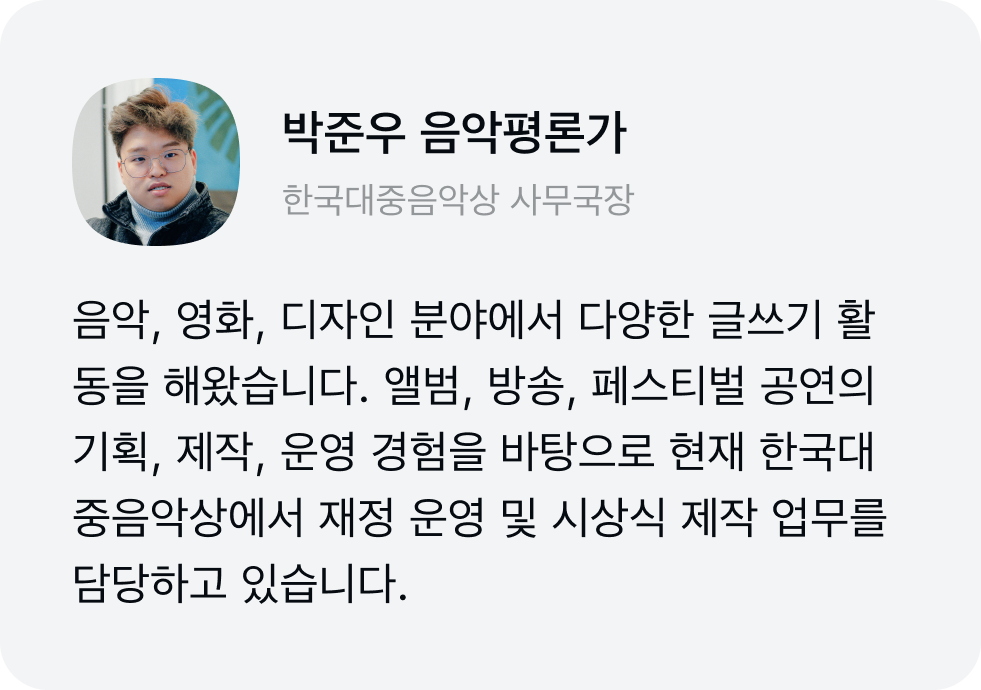 결국 플랫폼은 음악 산업 내 다양한 주체들에게 시너지를 제공하고, 아티스트가 음악 활동에 집중할 수 있도록 돕는 중요한 역할을 수행해요. 단순한 거래 중개를 넘어 큐레이션과 브랜딩이라는 부가적인 가치를 창출하며 음악 생태계의 건강한 발전에 기여하죠. 페스티벌도 마찬가지예요. 큰 비용이 필요하지만, 그 덕에 더 많은 아티스트의 라이브도 볼 수 있고 여러 무대를 쉽게, 한 곳에서 만날 수 있게 도와줘요. 그런 의미에서 페스티벌도도 좋은 음악 플랫폼이라고 할 수 있어요. 여러분은 올해, 어떤 음악 플랫폼을 통해 어떤 음악을 만나시나요?