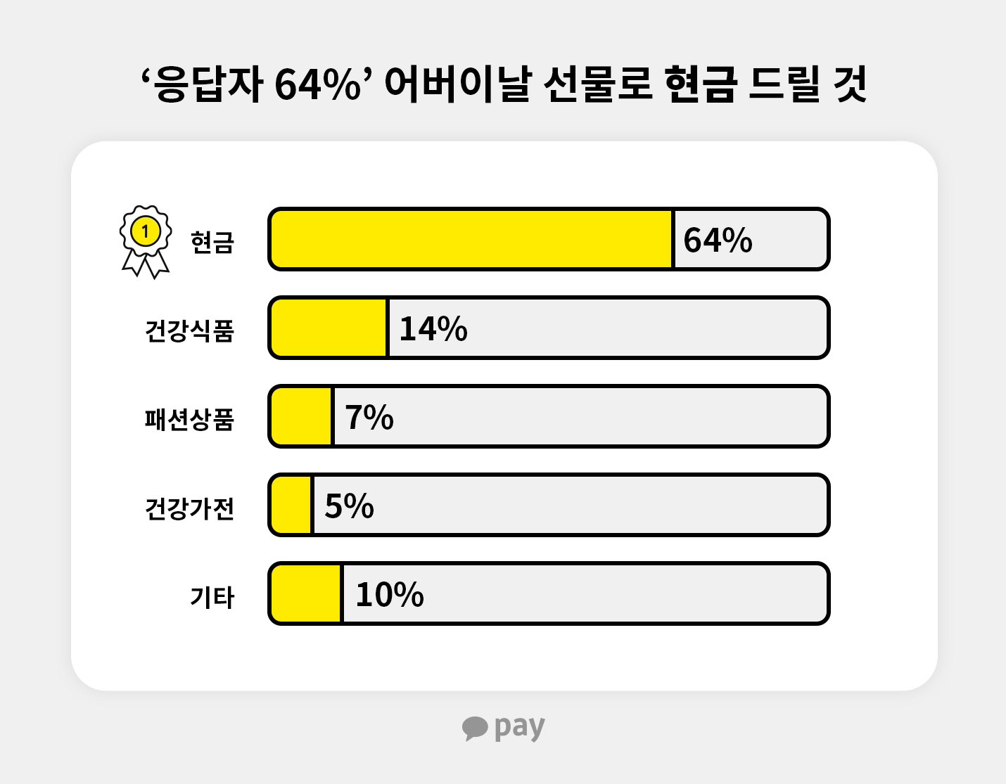 어버이날이 아니어도 기념일을 챙길 때, 현금만 드리기엔 선물같지 않은데다가 왠지 민망할 수 있어요. 그러면서도 매번 다른 선물을 고를지, 실용적인 현금을 드려야 할지 고민되죠. 🤔 그럴땐 페이상품권을 추천드려요. 상품권 형태로 선물을 전달하는 건데요. 실속있으면서도 좀 더 격식있는 선물이라 두 마리 토끼를 모두 잡을 수 있답니다.