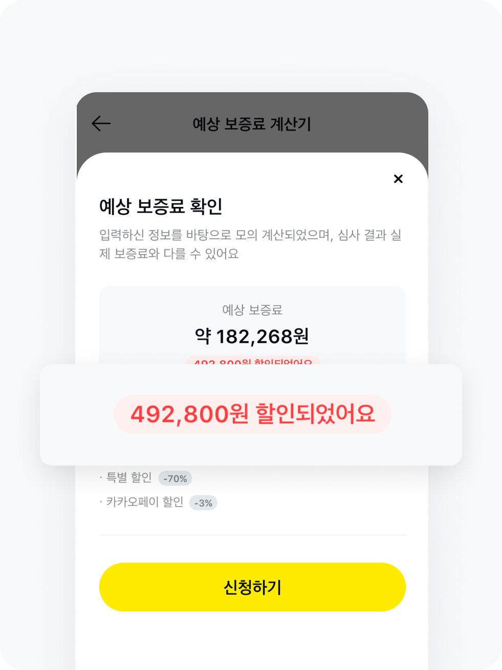 내 소중한 보증금 지켜주는 건 좋은데… 너무 비싸지 않을까 걱정되시죠? 지금 우리집 전세금만 입력하면 1초만에 예상 보증료를 확인할 수 있어요. 복잡한 서류가 없어도, 은행까지 가지 않아도 돼요! 카카오페이에서 간편하게 전세보증금 반환보증에 가입하세요. ✔️집주인 동의없이 ✔️서류부터 결제까지 카톡으로 한 번에 ✔️누구나 3% 추가할인