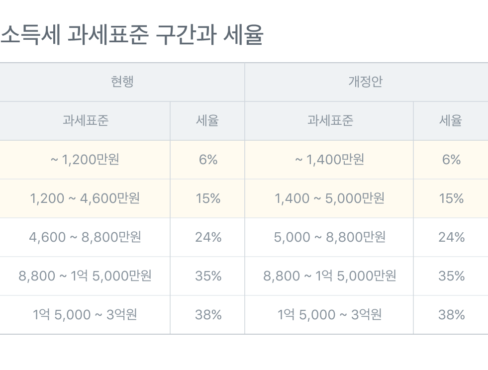 정부가 세금을 매기는 기준인 과세표준 구간을 조정해요.