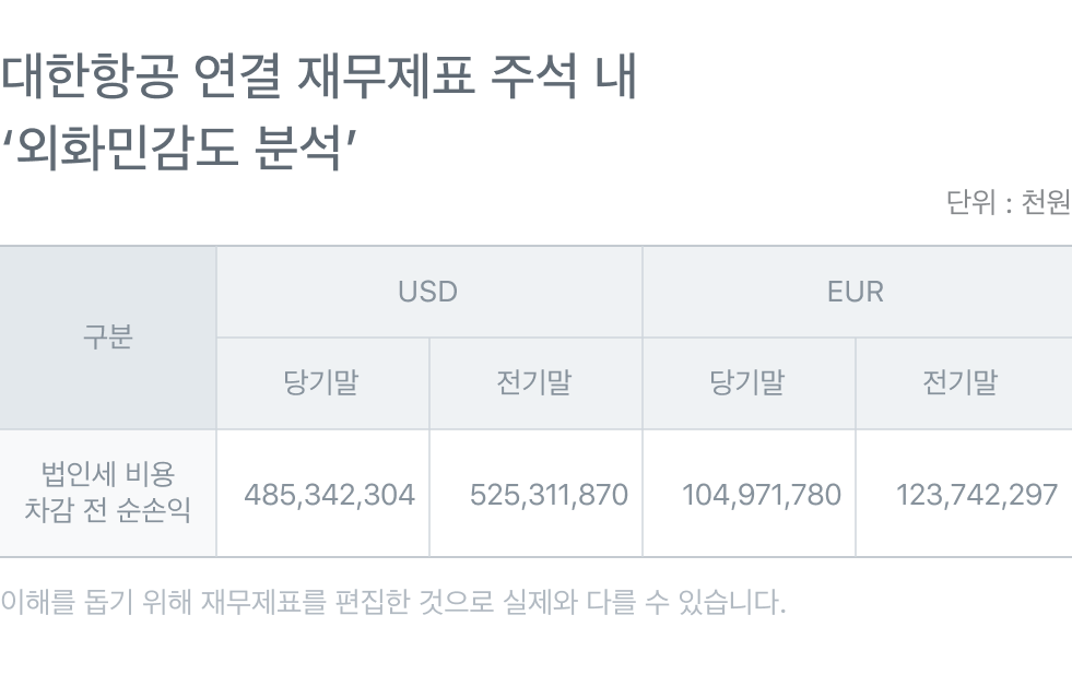 유가가 10% 오르면 1,786억원의 영업손실을 본다고 나와 있습니다. 대한항공의 작년 한 해 당기순이익은 5,800억원 정도였으니 환율과 유가 변동만 해도 큰 위험 요인이 되고 있다는 걸 파악할 수 있죠. 회사가 공개한 결과를 활용하면 금리, 환율이 미치는 영향을 파악할 수 있어요. 금리 1%, 환율 10% 상승을 가정하고 손익 변동을 계산해 보여줬다면, 우리는 실제 오르내린 숫자를 대입해서 손실액을 유추해 볼 수가 있겠죠. 조금 어렵게 느껴질 수 있지만, 소중한 돈을 잃지 않으려면 부지런해야겠죠?
