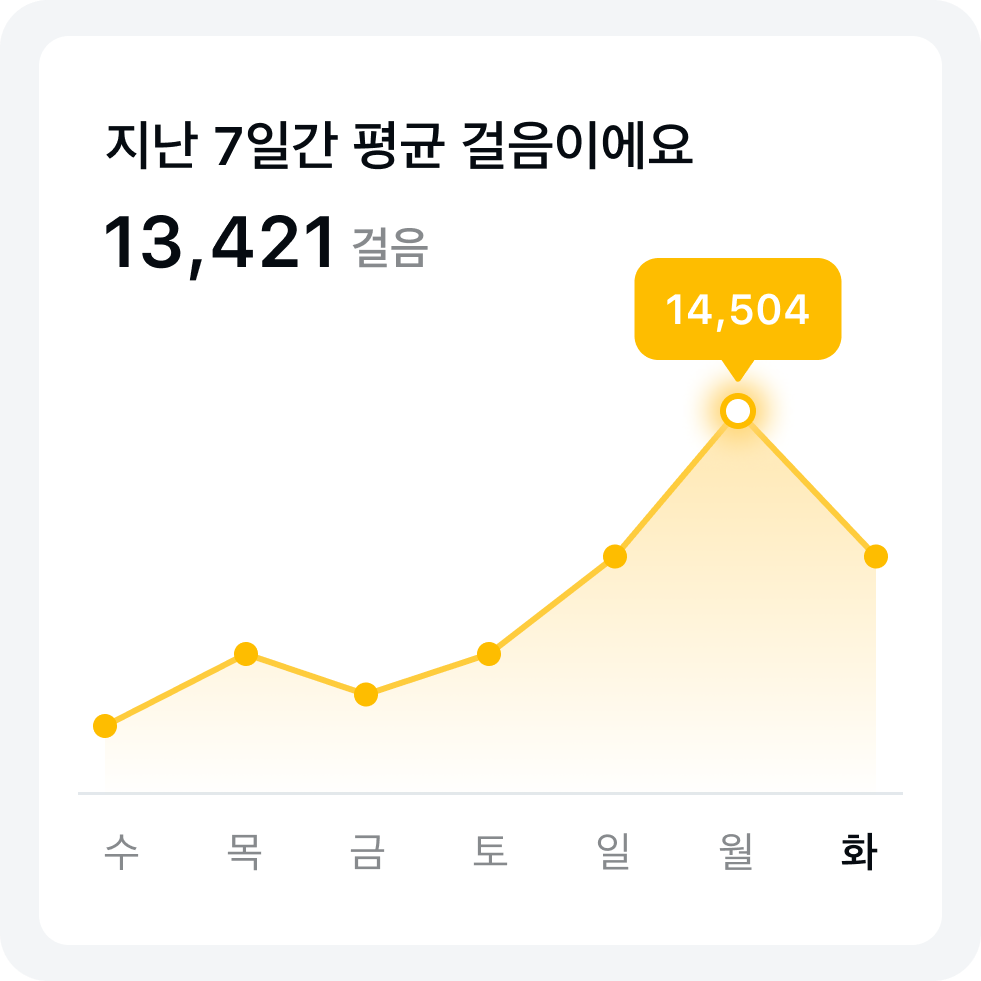귀여운 춘식이가 내 걸음 수를 세어줘요! 오늘 얼마나 걷는지 지켜보고, 일주일간의 기록도 비교해준대요. 어제보다 오늘 더 성장하는 뿌듯함을 느껴보세요.