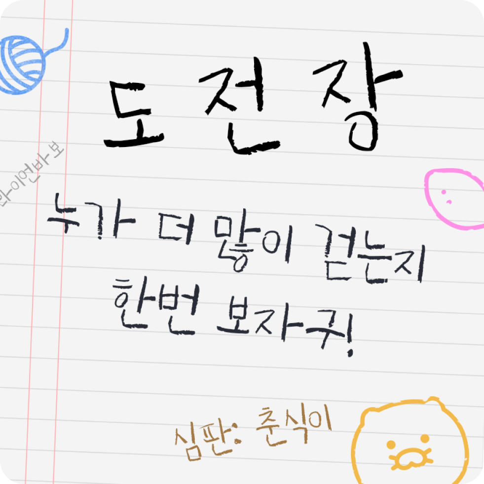 걷기왕춘식이에서 지금 바로 도전장을 보내보세요 💌